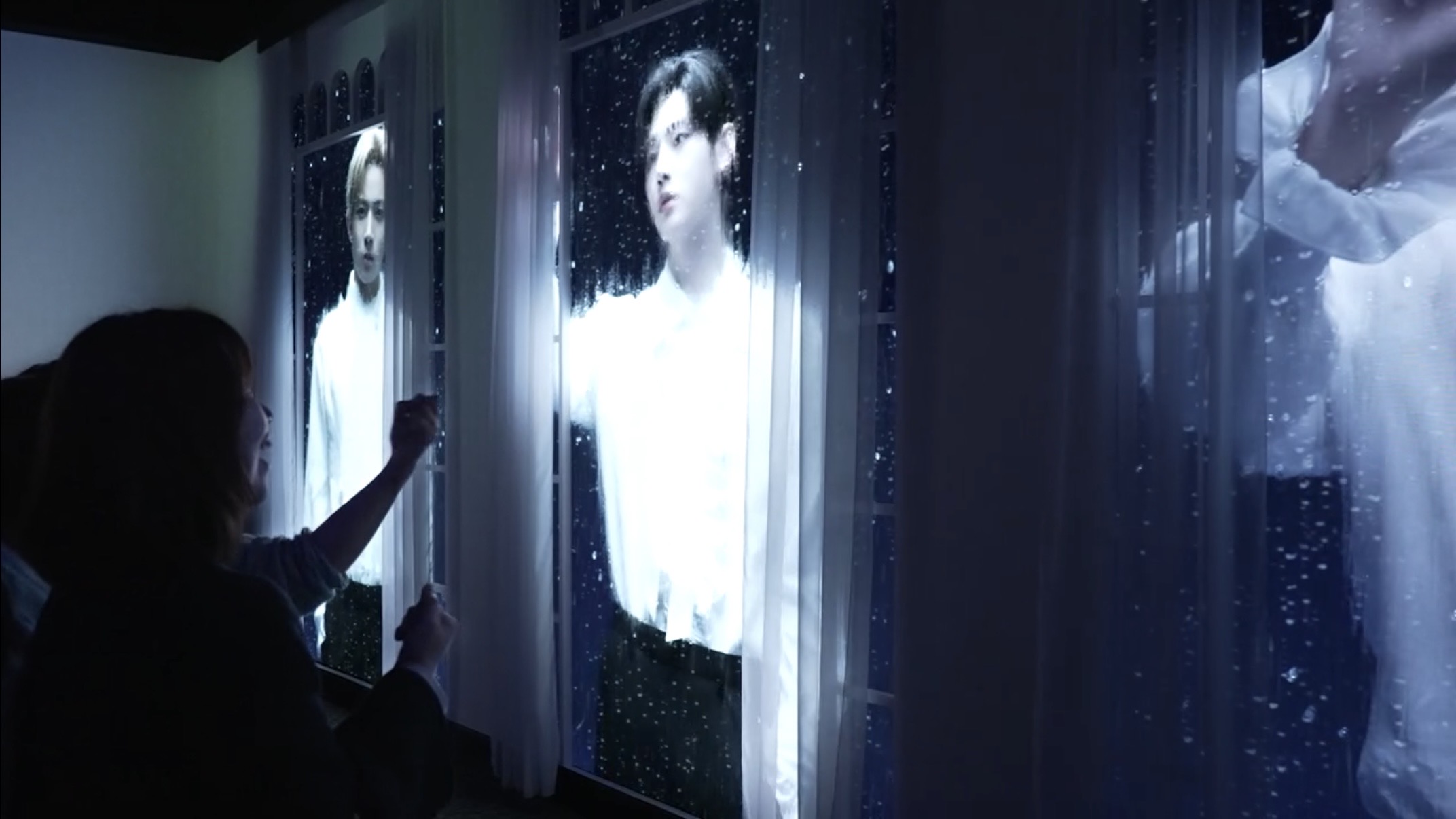 ガラスに手をついてくれると