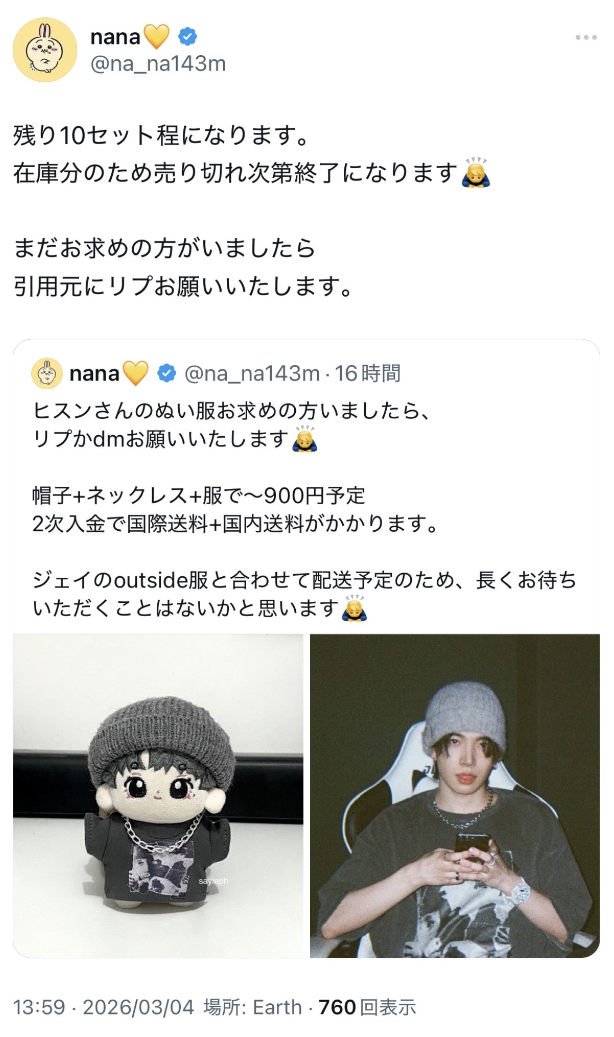 またヒスンのぬい服買うことにしちゃった🤎